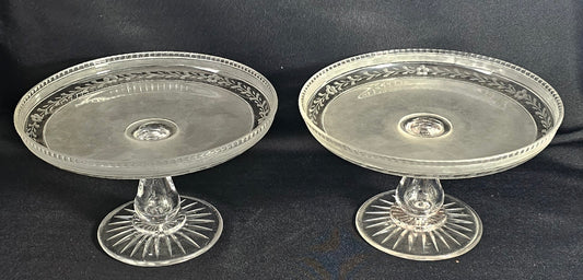 A Pair of Victorian Semi Frosted and Wheel Engraved Glass Tazze on star cut foot.