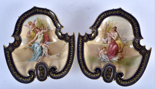 A Pair of 19thC Austrian Vienna Porcelain Dishes Hand Painted with Putti, Signed