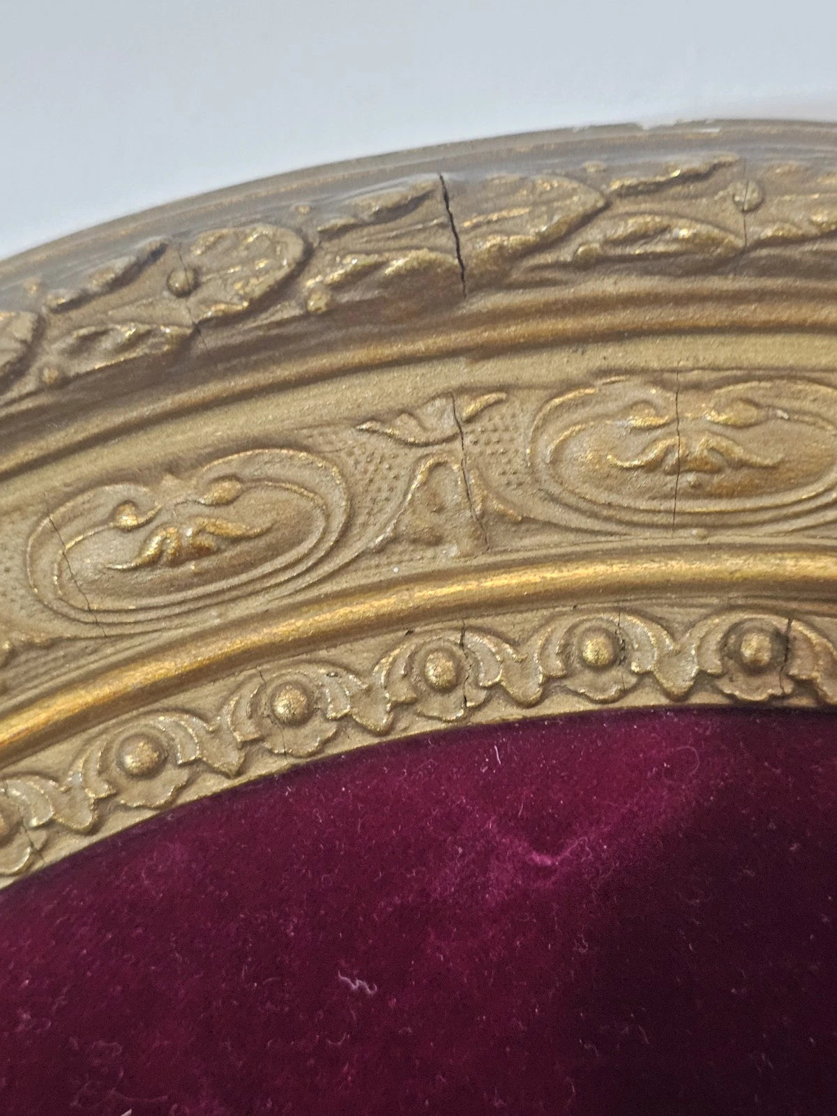 Mounted in fine red velvet and framed in its original hand carved gilt wood frame.