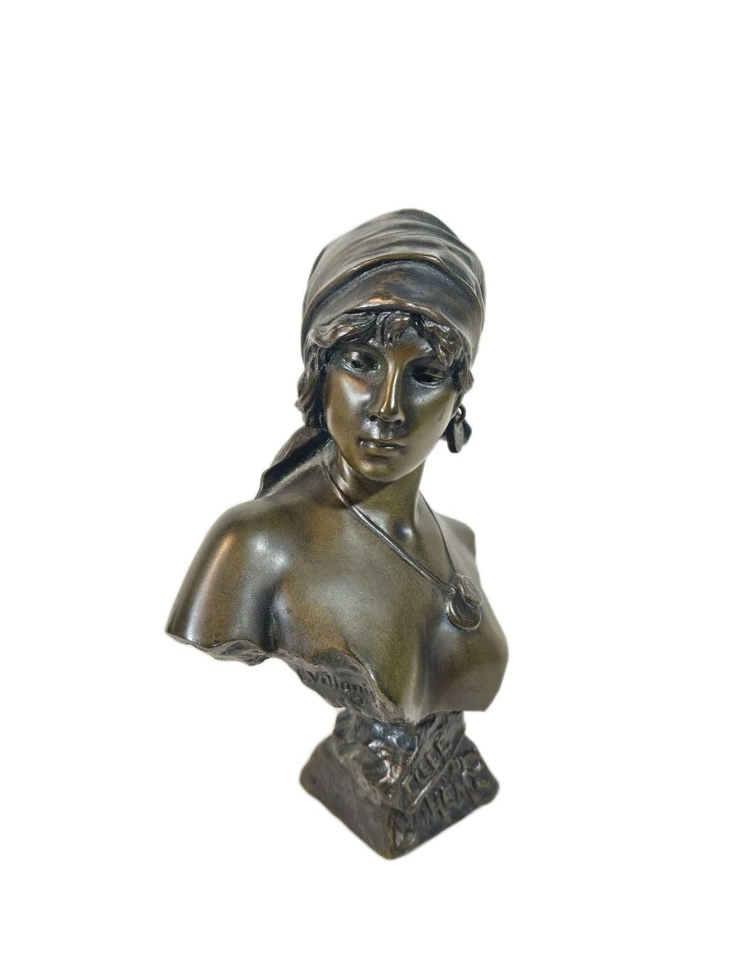 A 19thC Signed Emmanuel Villanis Bronze Bust of a Woman - La Bohmienne